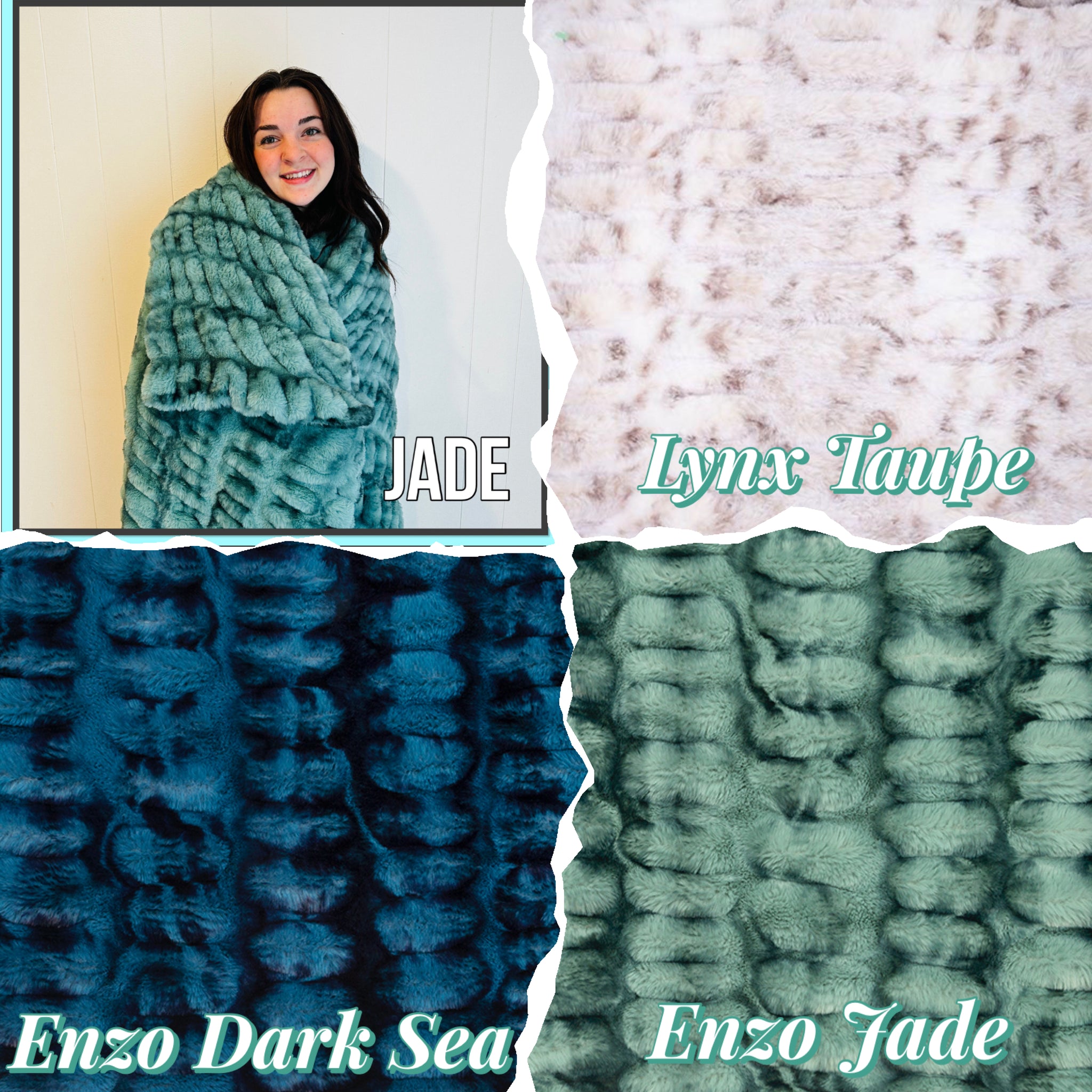 This Minky fabric is the softest most luxurious Minky fabric they have ever made. Making these the softest blankets we have ever had. They have a little stretch so as you wrap it around yourself it literally “hugs” you. Once you try it the biggest problem will be keeping it from the rest of the family.